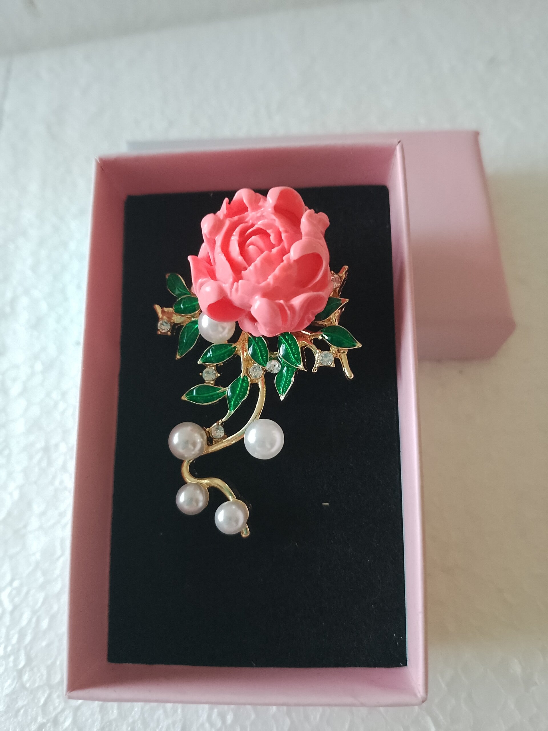 Diese Brosche in Form einer Rose ist ein echter Blickfng an jeder Kleidung. Sie ist aus einer Metall Legierung und Kunststoff.