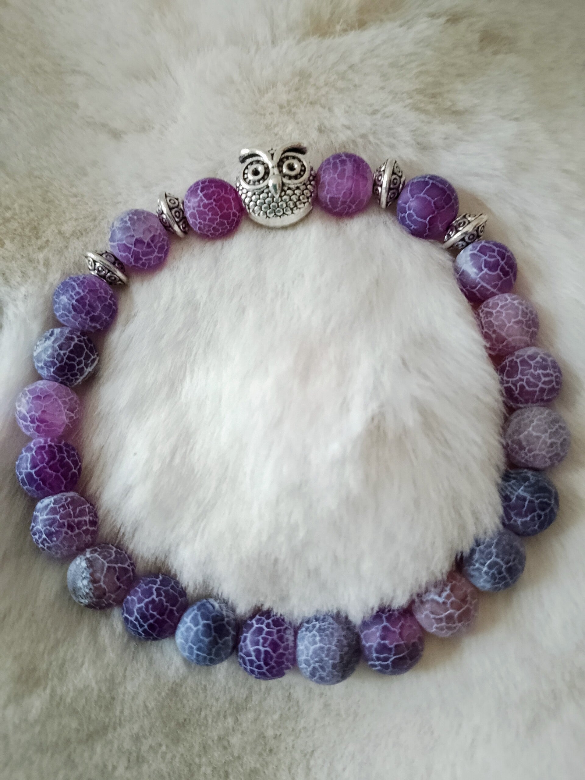 Schönes Perlen- Armband aus Naturstein Durchmesser der Perlen 0,8 mm. Eine kleine Eule aus Metall-Legierung verziert das Armband