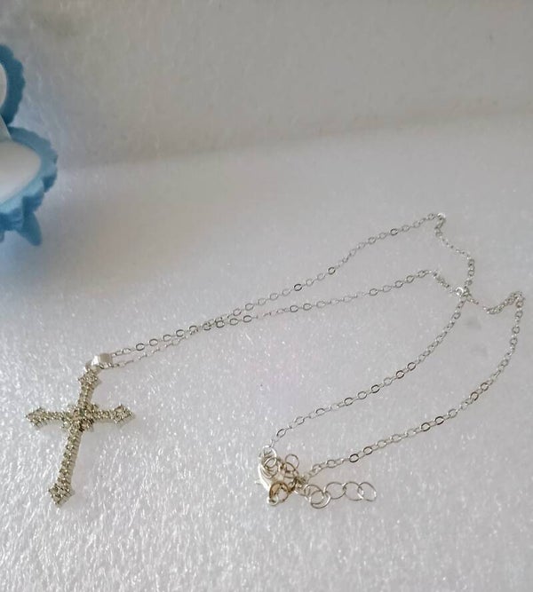 Eine tolle Halskette mit einem wunderschönen Kreuzanhänger im gotischem Stil. Das Kreuz ist mit Strasssteinen besetzt. Das Kreuz ist ca 3,5 cm lang und 2,5 cm lang. Die Kette ist ca 44 cm lang und um ca 4 cm verlängerbar Material ist eine Zinklegierung
